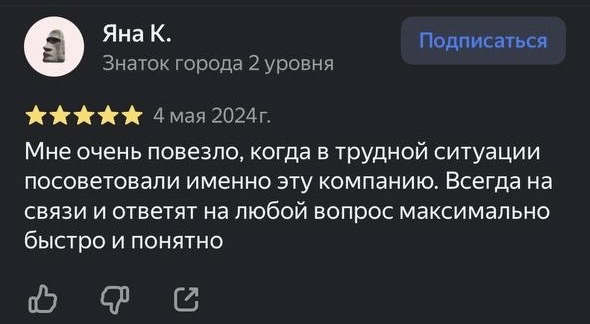 Яна освободилась от навязанной задолженности и рассказала о своём опыте работы с нами в отзыве: